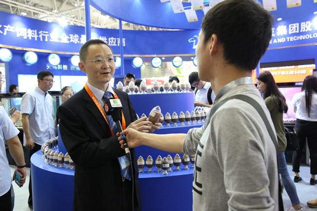 上图为全国饲料工业标准委员会委员、博鱼平台_博鱼(中国)一站式服务平台,科技研发中心总监张蕉南接受记者采访