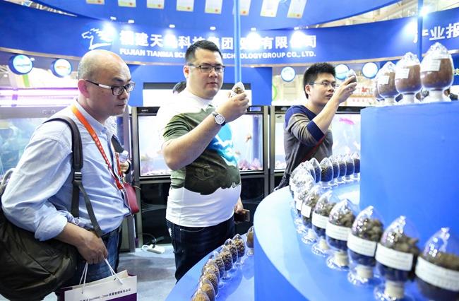以现场中受到很多专业人士关注的石斑鱼的特种饲料为例。这款新型饲料外观跟其他饲料似乎没什么差别。“这款饲料转化利用率也很高,1斤饲料可以养1斤鱼,别的厂家可能1.2斤或者1.3斤才能养1斤鱼。”张蕉南总监颇为骄傲地说,这款饲料吸水特别快,而且吃这款饲料的鱼消化吸收好,粪便成形、量少、水里更容易降解,能很大降低水体的污染,“我们产品定位从公司建厂起就是环境友好型的。我们将不断把我们安全、高效、环保的水产饲料推向全国各地乃至世界,打造特种水产饲料行业全球最大的供应商。”