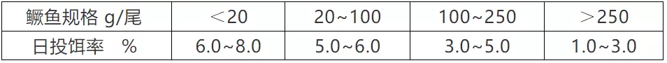 «根据池塘鳜鱼数量,参考日投饵表,并根据气候、水温、水质、鳜鱼生长摄食状况来推算日投饵量。